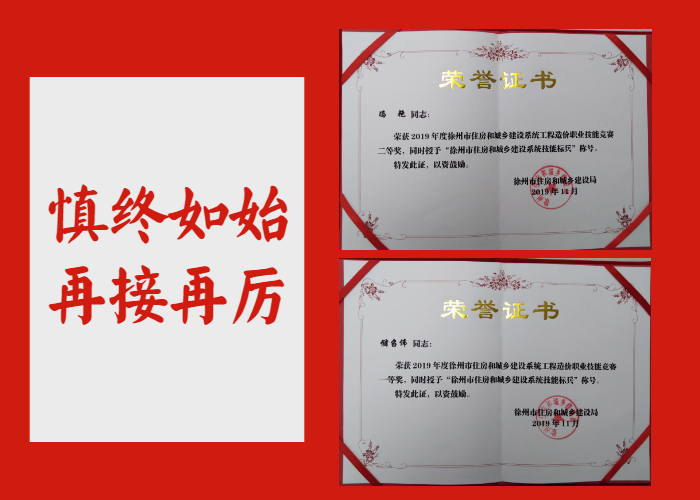 最終,我所員工儲(chǔ)召偉、馮艷同志披荊斬棘勇奪第一,同時(shí)被授予“徐州市住房和城鄉(xiāng)建設(shè)系統(tǒng)技能標(biāo)兵”稱號(hào)。